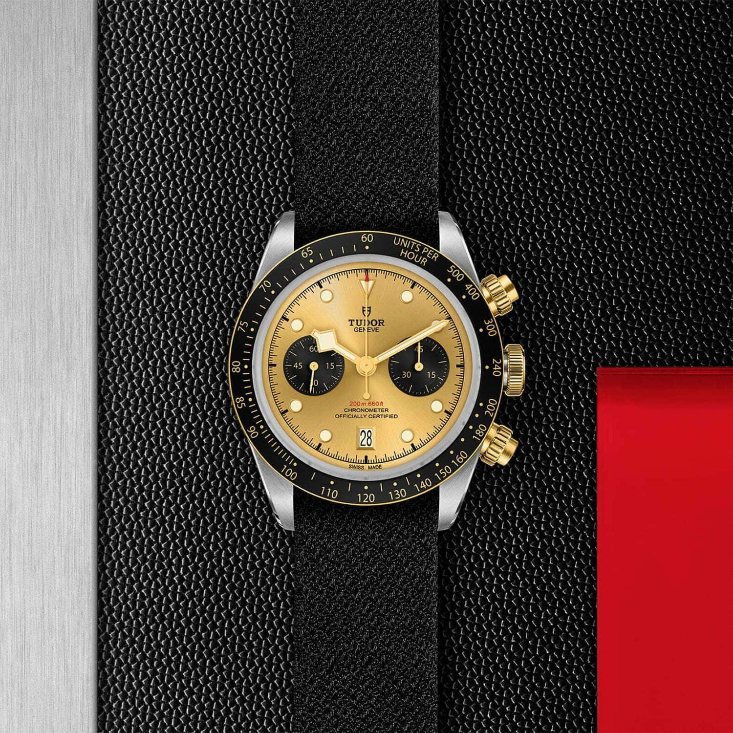 The Black Bay Chrono S&G model features a dial inspired by the Tudor divers’ watches produced in the 1950s. It also adopts the characteristic angular hands known as "snowflake". Finally, the large winding crown, characteristic of the first generation of Tudor divers' watches, is also adopted in this model.